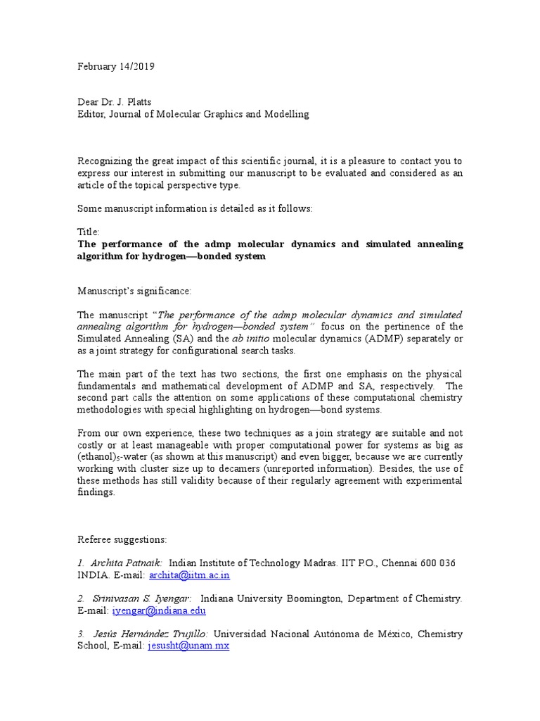 A coverletter for manuscript submission is a document intended for the editor of the journal in order to persuade them to send the manuscript for peer review. So it is important that the letter is. Prior interaction with any of the editors of that journal: Cover letter a cover letter is required with each submission/round of revision and is an informal introduction to the paper citing any relevant information to the editors about the manuscript that is not included in the text. Many journals require a cover letter and state this in their guidelines for authors (alternatively known as author guidelines, information for authors, guide for authors, guidelines for papers, submission guide, etc.).